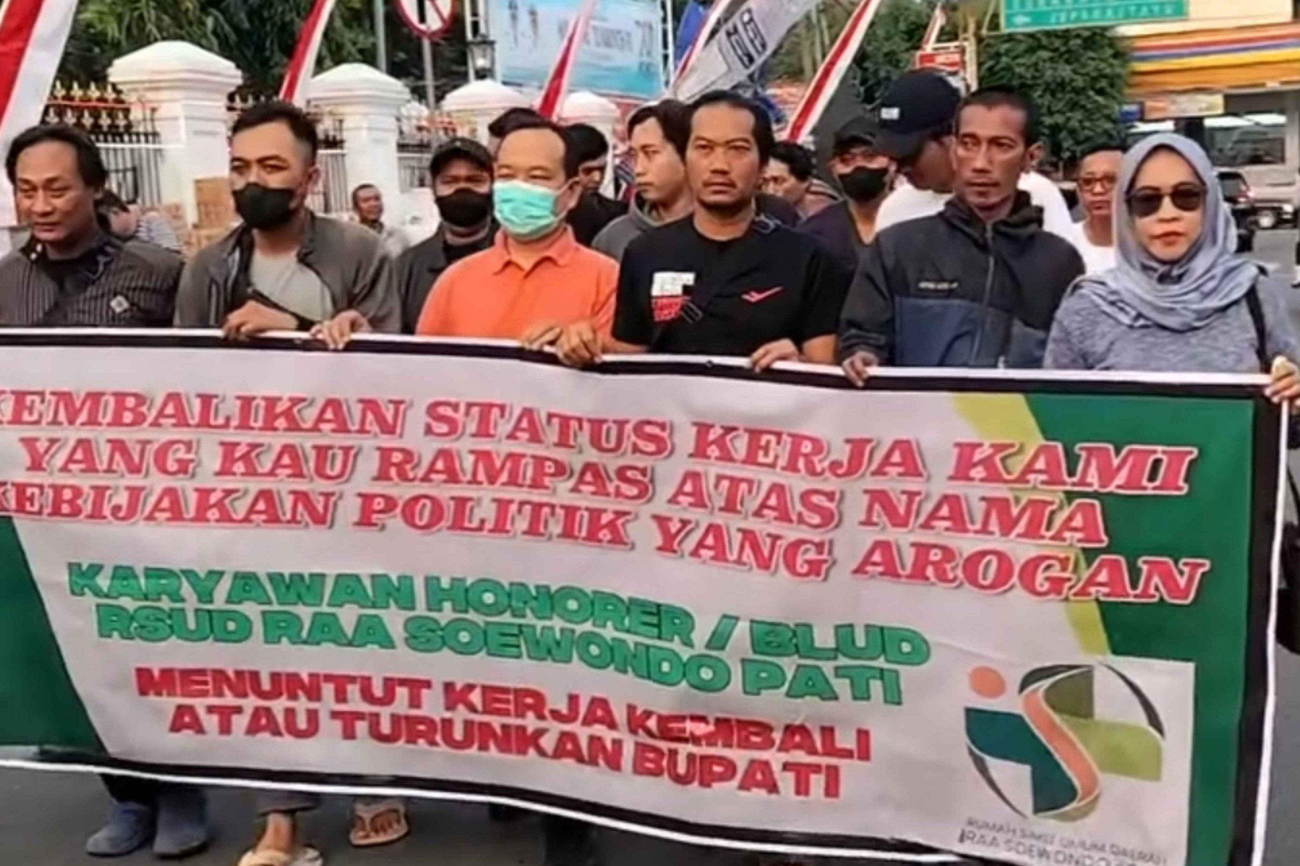 Kisah serupa dialami M. Roni, rekan seperjuangan yang juga sudah dua dekade mengabdi di rumah sakit tersebut. “Efisiensi katanya, tapi hidup kami justru jadi berantakan. Ekonomi terpuruk, kerja susah, sekarang menganggur. Kami warga asli Pati, kami manusia, bukan angka di atas kertas,” ucapnya lantang.