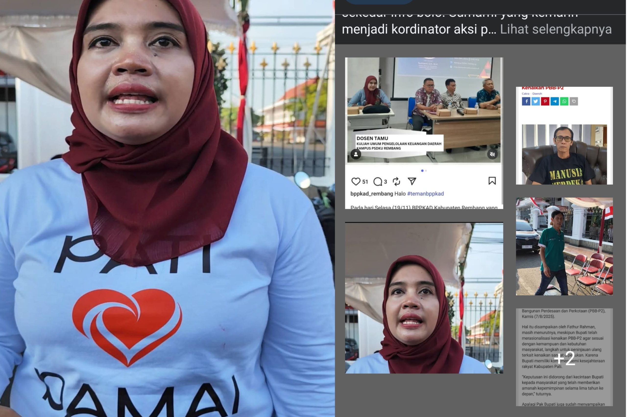 Rembang , PortalMuria.com – Aksi seorang aparatur sipil negara (ASN) asal Rembang bernama Sumarni yang viral di media sosial lantaran membagikan nasi bungkus di depan Pendopo Kabupaten Pati dengan mengatasnamakan kelompok Emak-Emak Pati Cinta Damai, akhirnya menuai respons resmi dari Badan Pendapatan, Pengelolaan Keuangan dan Aset Daerah (BPPKAD) Kabupaten Rembang.
