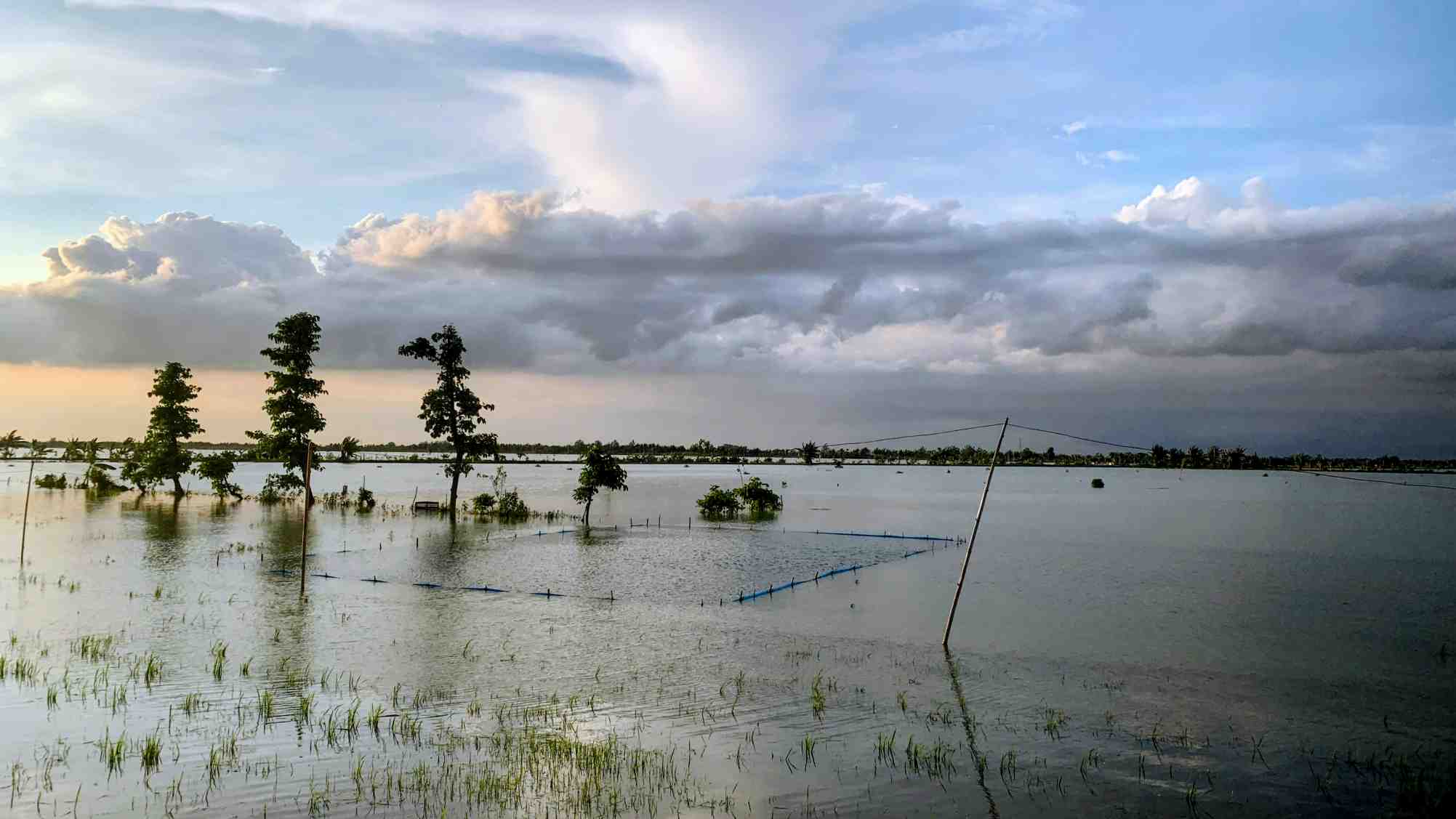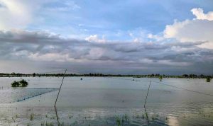 Pati, PortalMuria.com — Hujan deras yang mengguyur kawasan Sukolilo, Kabupaten Pati, selama beberapa hari terakhir berujung petaka. Banjir bandang melanda sejumlah desa dan menenggelamkan ratusan hektar lahan pertanian, meninggalkan kepedihan bagi para petani yang menggantungkan hidup dari tanah yang kini berubah menjadi lautan air.