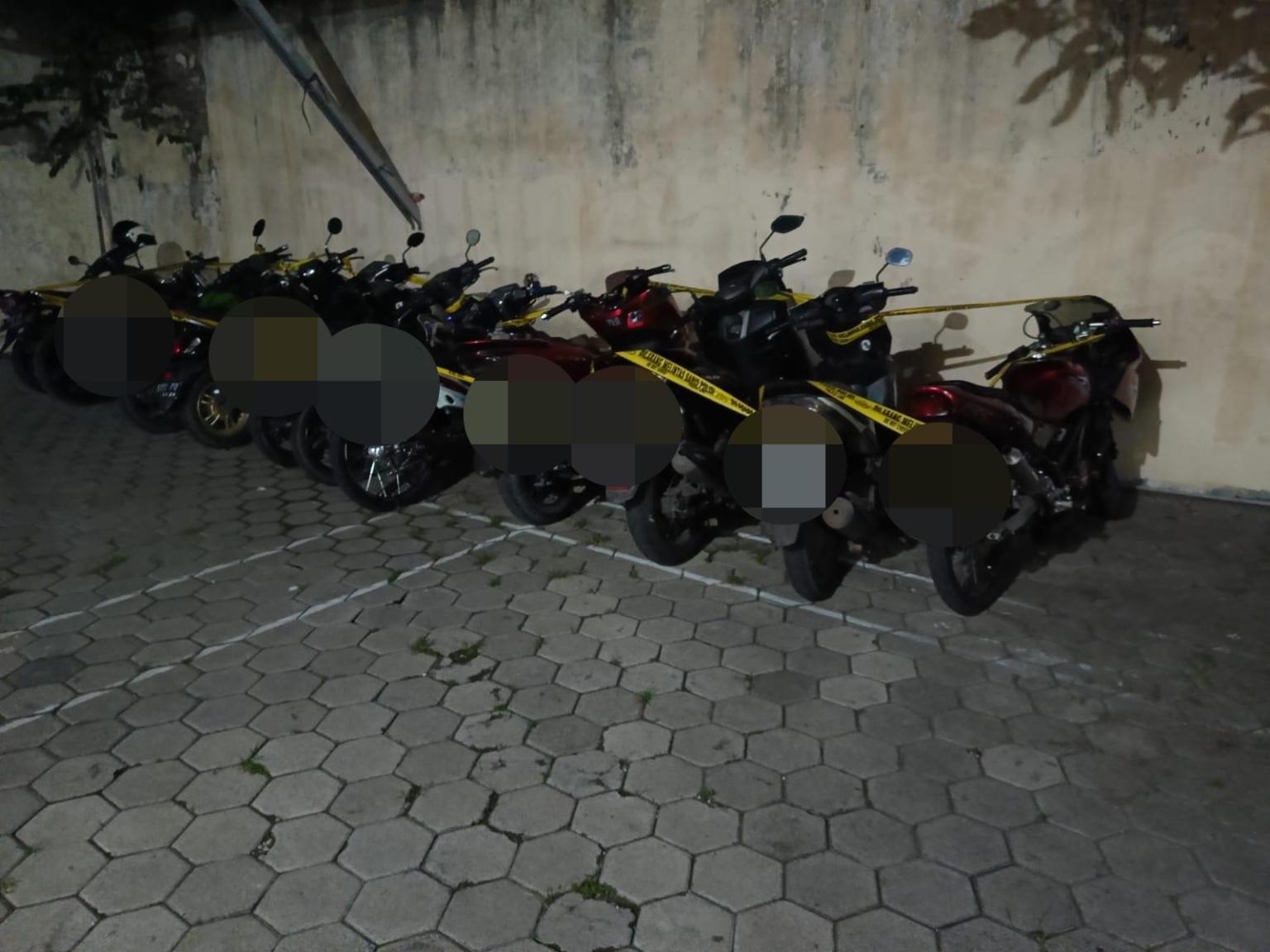 Tak hanya para remaja, sebanyak sembilan sepeda motor berbagai jenis turut disita. Sebagian besar telah dimodifikasi ekstrem dan tidak dilengkapi komponen standar, ciri umum kendaraan balap liar.