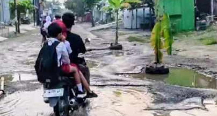 Jalan rusak parah di selatan RSUD Kayen, Pati, viral setelah warga menanam pohon pisang sebagai bentuk protes. Kondisi berlubang dan tergenang air dinilai membahayakan pengguna jalan.
