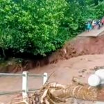 Jembatan di Desa Klakahkasihan, Kecamatan Gembong, Pati, ambruk diterjang banjir bandang Jumat malam. Akses antar dukuh terputus, warga terpaksa memutar jauh.