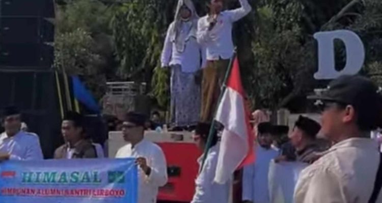 Suara lantang santri menggema di depan Gedung DPRD Rembang, Jumat sore (17/10/2025). Puluhan massa yang menamakan diri Santri Bersatu Bela Kiai dan Pondok Pesantren menggelar aksi damai menuntut klarifikasi dari Trans7, buntut dari tayangan yang mereka anggap melecehkan marwah kiai dan pesantren.